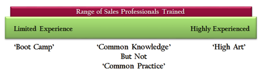 We have had the privilege of training over 5,000 sales professionals across the continuum of sales experience shown below. We customize the training specifically for each client always considering and incorporating the following: